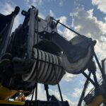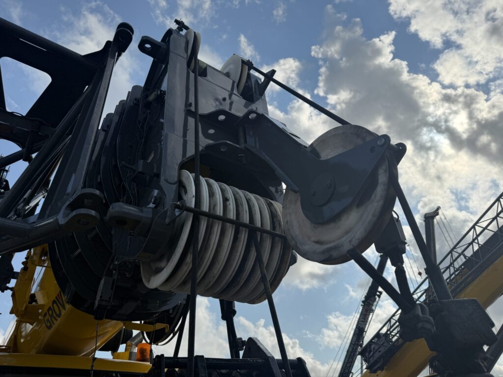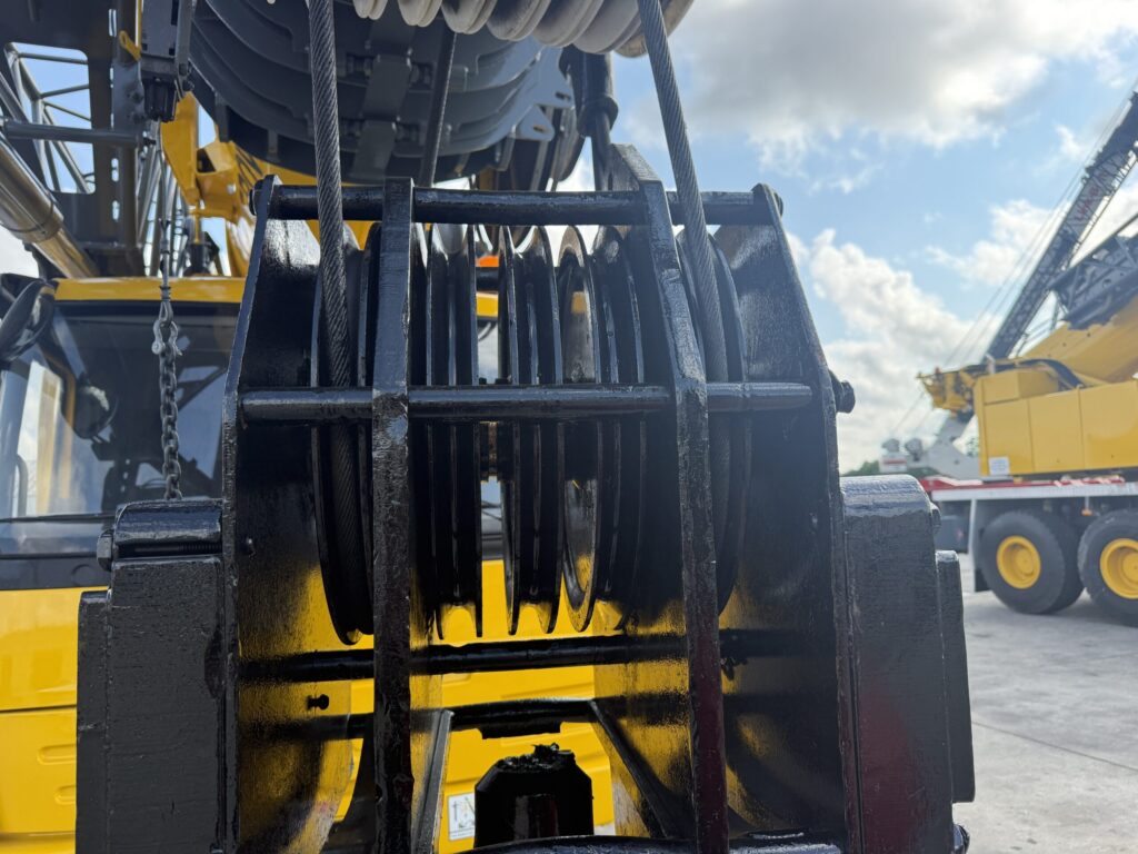 165 Ton Cap, 197’ of Main Boom, 36’-59’ hydraulically offsetable Jib, One 26′ Jib Insert and One 20′ Jib Insert, Mercedes Engines up and down, Mercedes Transmission, 5 sheave Block, Headache Ball, two winches, ECOS and EKS 5 light systems, megatrak suspension, 88,400 Lbs of Counterweights, 9,821 upper hours, 4,109 lower hours and 84,057 kms or 52,535 miles