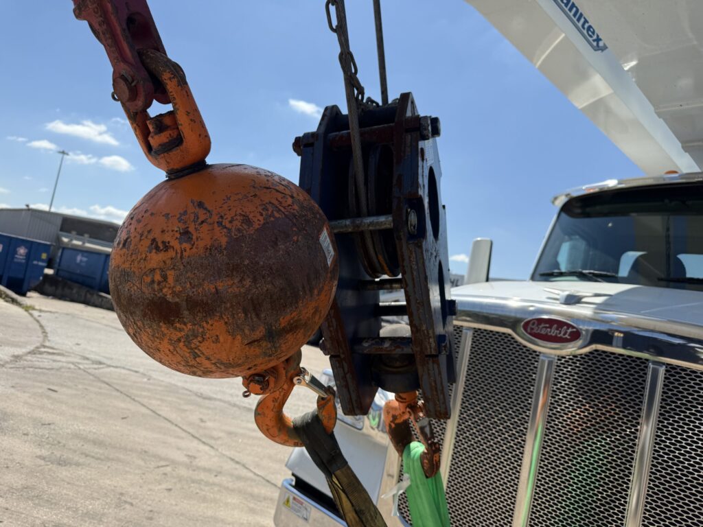 50 Ton Crane, 155′ Main Boom, 39’Jib, Hirschmann VScale  LMI and A2B System, A/C, Manual Transmission, PACCAR Engine, 15 Ton Single Sheave Block, Ball, two winches, rooster sheave, with 2,944 PTO hours, 3,616 engine hours and 9,908 miles. Man Basket included.